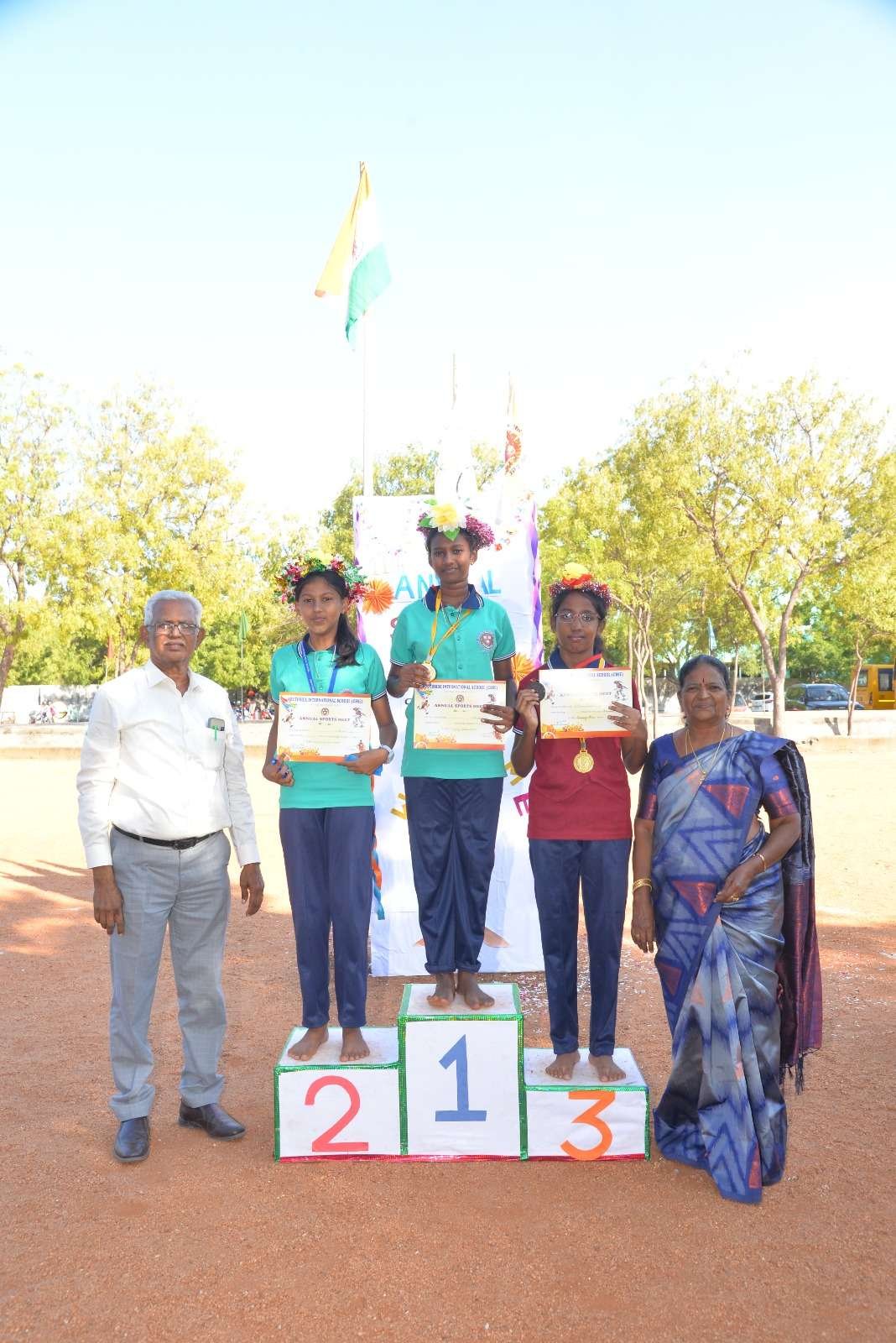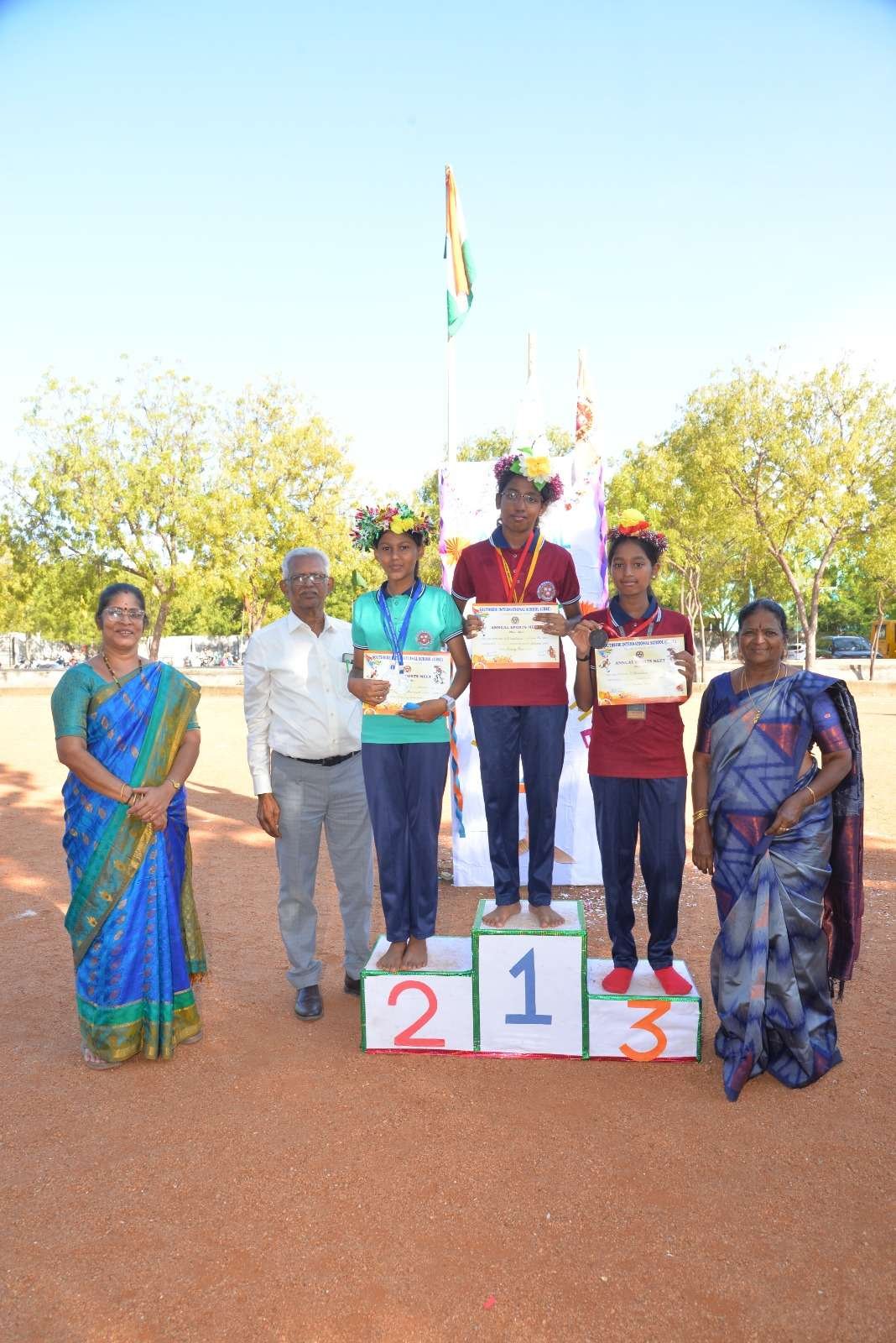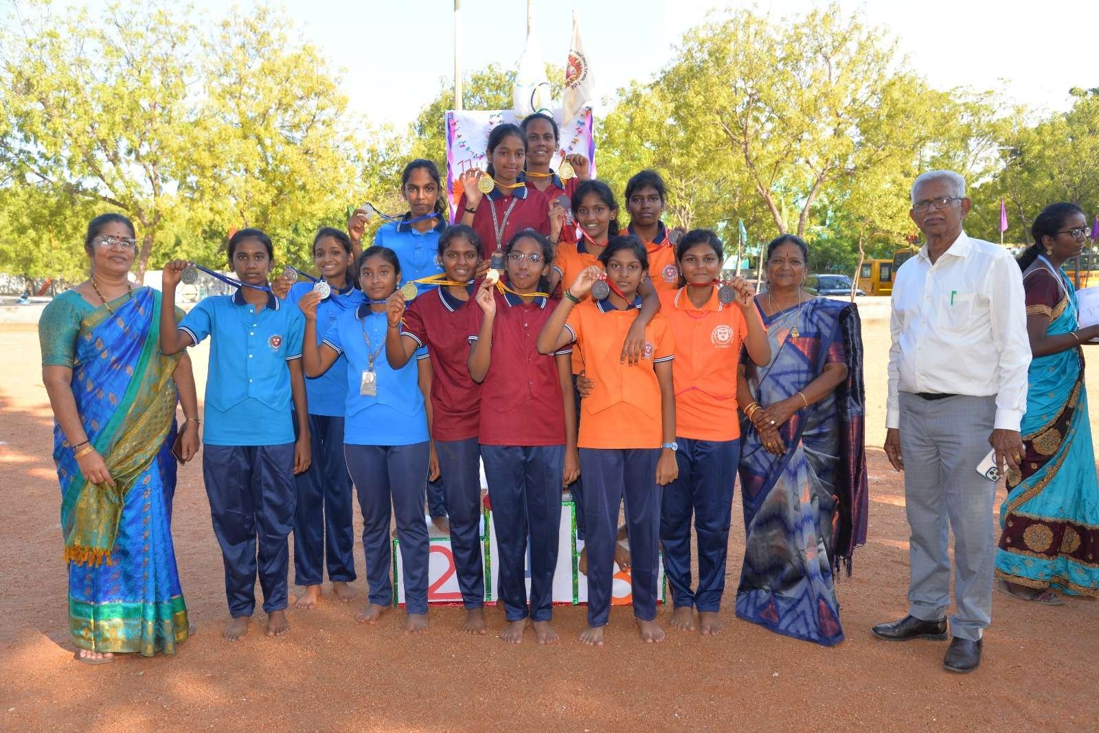 The school has well-qualified full time physical education teachers to supervise and coordinate the various sports activities. The budding talents are given special coaching in their respective disciplines by experts and offered maximum opportunity to participate in the district and state level inter school competitions.